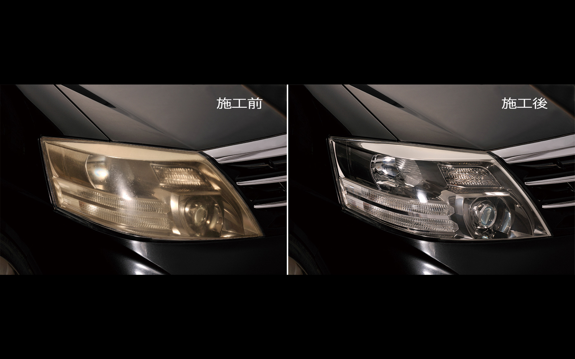 The "Headlight Restorer" removes yellowing and maintains clarity for up to 2 years.